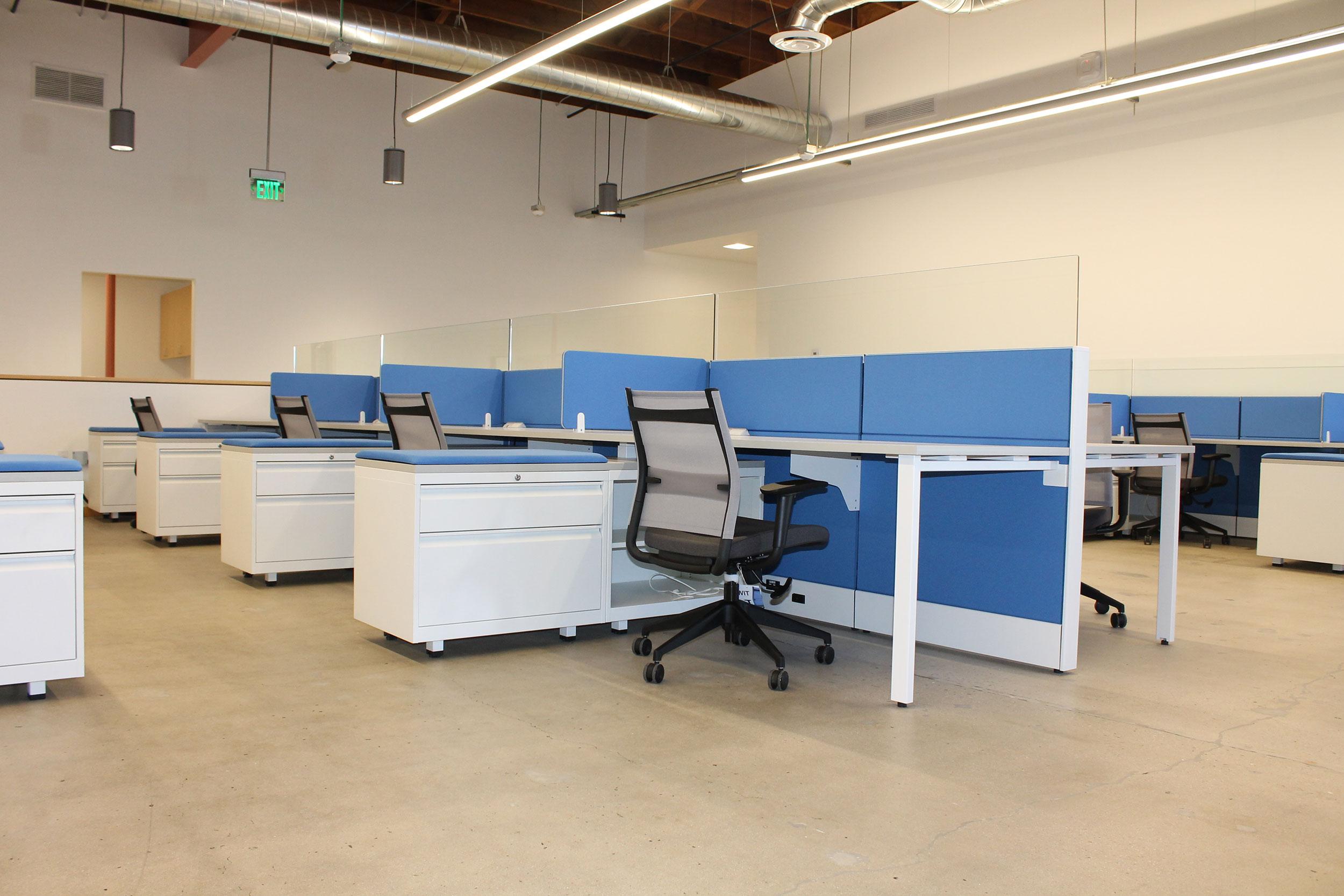 Together with SAA and our partner dealer ODS was tasked to provide quality solution utilizing modern benching concept, more traditional cubicle lay-out and private offices from single source while operating on strict budget. To make the project stand out, many unique optional features were used: laminated tiles on the exterior, new frameless, bracket-less channel-mounted frosted glass, new XBench legs and optional RTF (Rigid ThermoFoil) work-surfaces in the private offices.